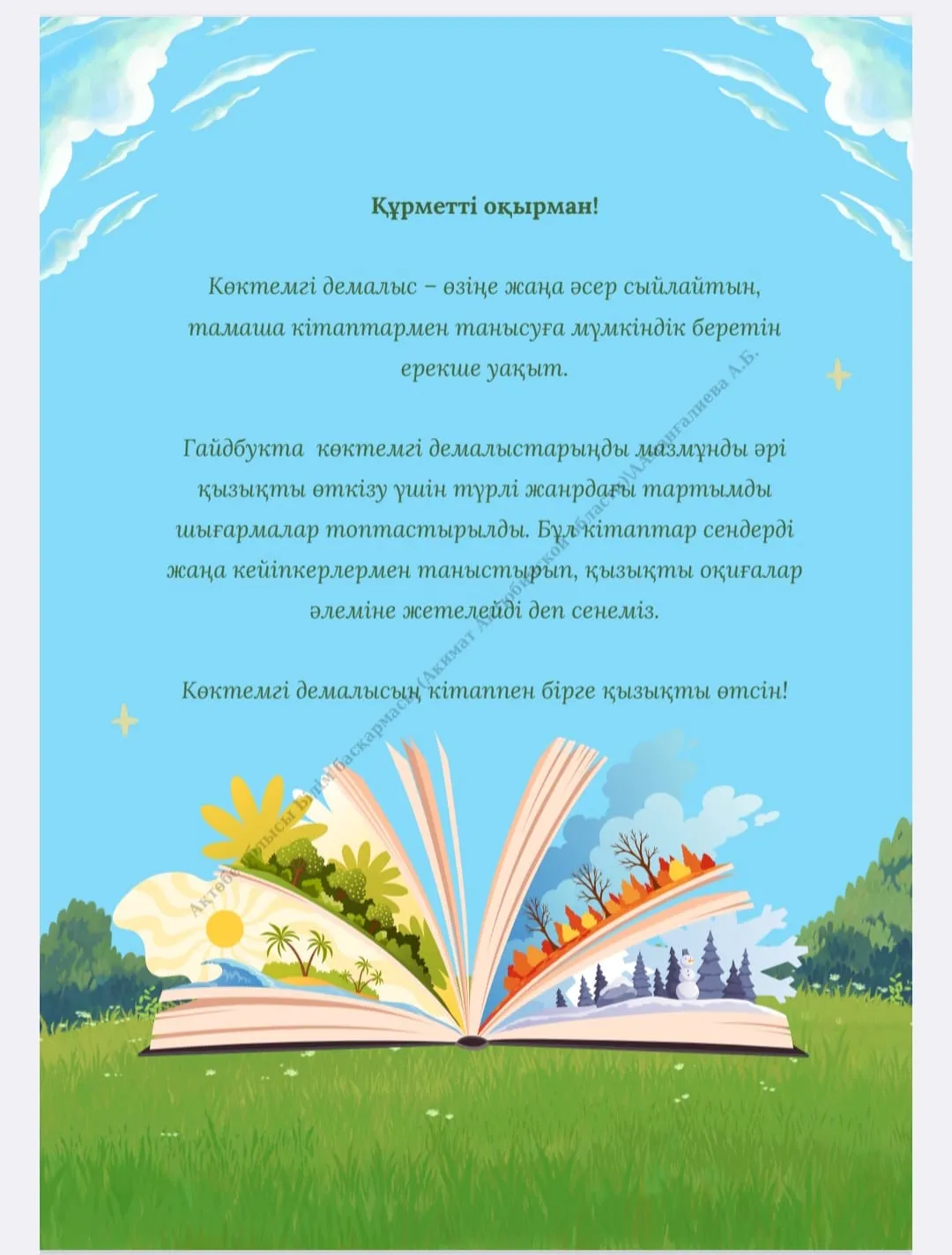 «Кітаппен келген көктем» акциясымен демалыстарыңызды жақсы өткізіңіз!